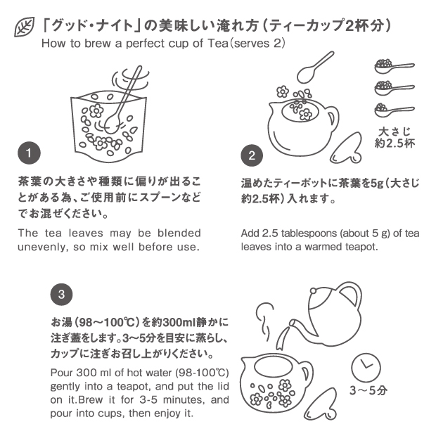 ナイトティーにおすすめのブレンド。ラベンダーの香りと自然な甘味でくつろぎのひとときを。