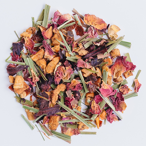 アップル、ローズヒップ、レモングラス、ハイビスカス、ローズペタル、サフラワー、ステビアリーフ、香料