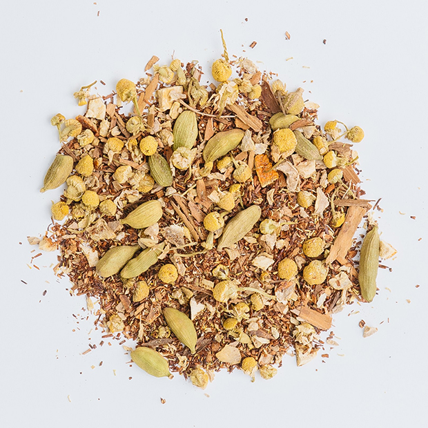 ルイボス、生姜、カルダモン、シナモン、カモミールジャーマン、オレンジピール
