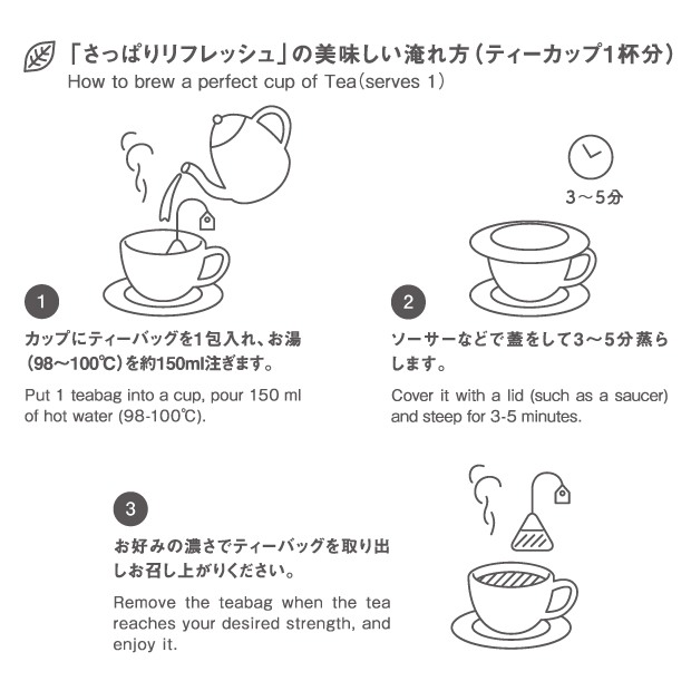 気分転換したいときのブレンド。清涼感あふれるペパーミントが爽やかに香り、お口直しにもおすすめ。ティーバッグは「ソイロン」という植物のデンプンを原料とした土に還る素材を使用しております。