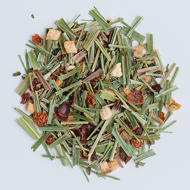 レモングラス、ローズヒップ、レモンピール、ローズマリー、レモンバーム、ペパーミント