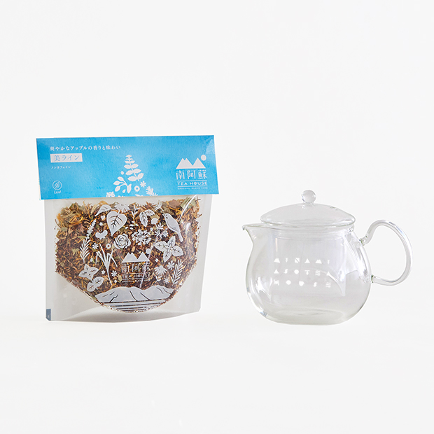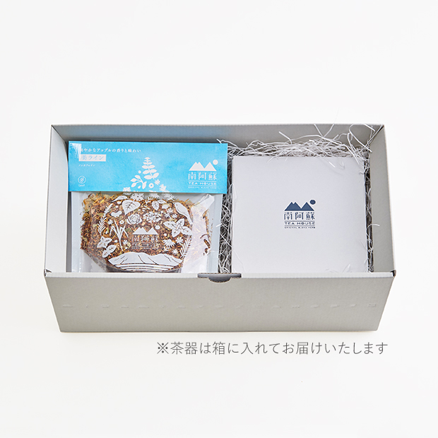 ルイボスベースのアップルティーの様なお味で飲みやすさが人気のハーブティーと、南阿蘇TEA HOUSEオリジナルティーポットをセットにしました。