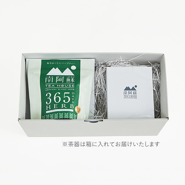 ハーブに馴染みのない方でも飲みやすく、毎日でもお楽しみいただける定番ハーブティー「365DAYS HERB」のティーバッグタイプと、「南阿蘇TEA HOUSEオリジナルティーメイト」をセットにしました。